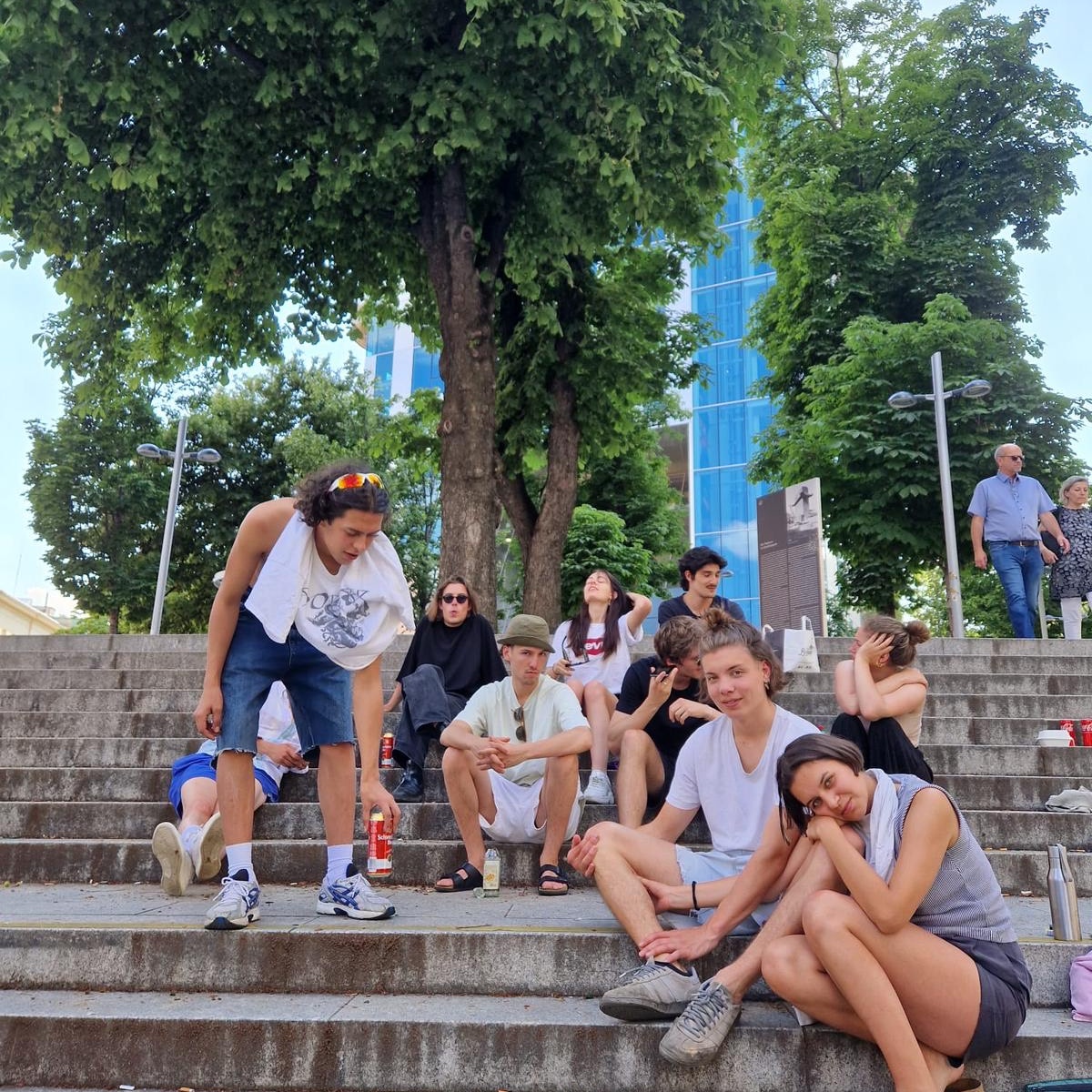 Ausgangspunkt war ein Gefühl, ein Moment, etwas das wir, denke ich, alle kennen. Die Rede ist, beispielsweise von der Treppe vor dem Haus des Meeres. Dort treffen sich jung und alt um zu verweilen, ihre Mittagspause zu verbringen, zu kommunizieren, zum feiern oder einfach nur zum entspannen. Eigentlich ist eine Treppe salopp gesagt ein Wegverbinder. Doch wir verstehen es, wie vorher genannt, als viel mehr. Die Treppen sind in den Städten einige der wenigen Rückzugsorte, die noch autofrei sind. Doch wird auch dort mittlerweile eingegriffen. Setzt man sich an der spanischen Treppe in Rom hin, wird man schnell von einem Aufsichtspersonal mittels Trillerpfeifen weggepfiffen. Diesen hybriden Charakter, diese freie Möglichkeit, wie man sich hinsetzt und wie