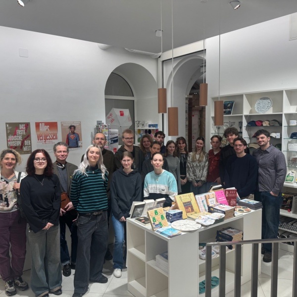 Das Kick-Off zum Projekt fand am 24. Februar im Jüdischen Museum Wien statt mit den Studierenden des 2. Semesters, Tina Haslinger (JMW-Marketing), Tino Valentinitsch (Gastbetreuung) und Stefan Moritsch (Projektleitung) statt.