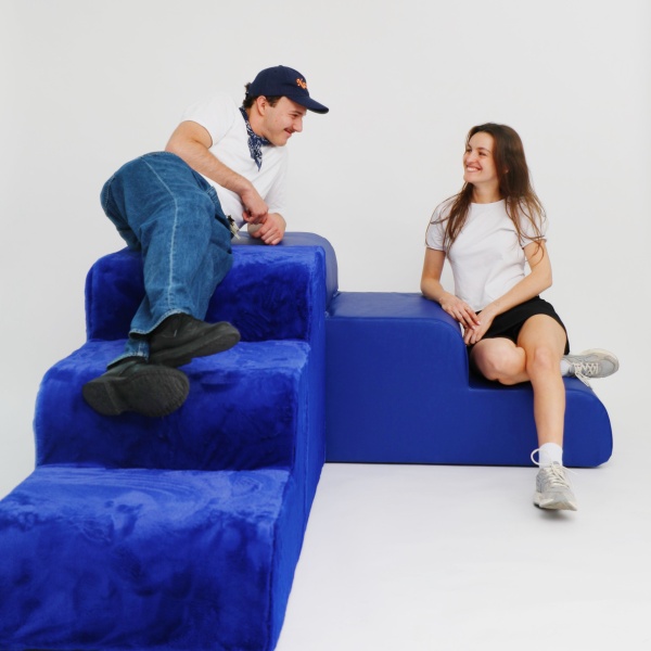 Als Ergebnis werden zwei gepolsterte Möbel vorgestellt, die nicht konkurrieren sollen mit einem Sofa, sondern additiv wirken sollen. Sie funktionieren alleine, wie auch zu zweit oder zu mehrt.